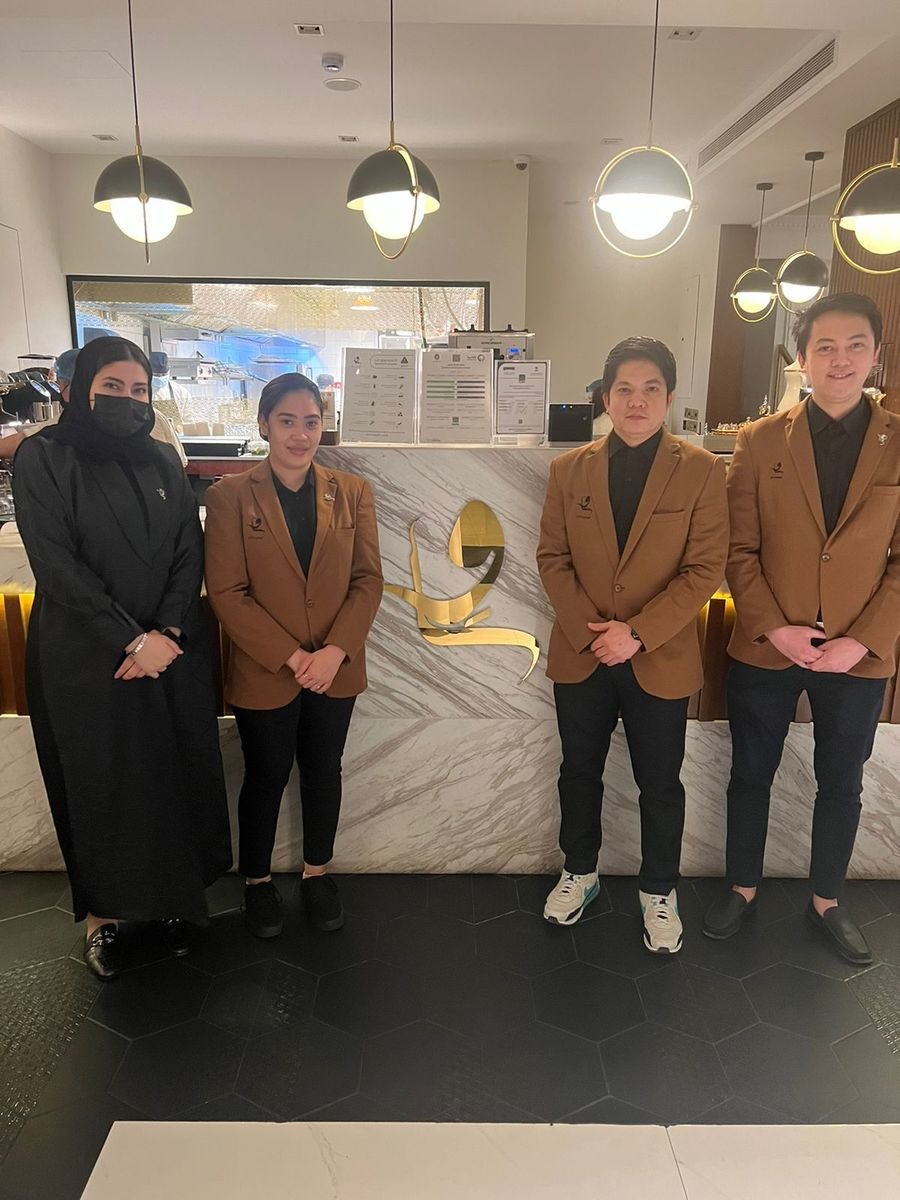 وكذلك جودة المنتجات فالعاملون مدربون وتم استقطابهم من مختلف الفنادق والمطاعم العالمية ولكل منهم تخصصه فمنهم المتخصص في الاكل الياباني ومنهم الايطالي ومنهم الشرقي بحكم ان المطعم يعتبر مطعم عالمي.