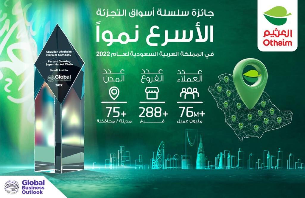 حصدت شركة أسواق عبدالله العثيم جائزة أسرع سلسلة أسواق تجزئة نمواً بالمملكة العربية السعودية في عام ٢٠٢٢م بناءً على تصنيف (Global business outlook) المتخصصة في القطاع الاقتصادي، وجاء حصول الشركة على هذه الجائزة انعكاساً للاستراتيجية والرؤية التي سارت عليها لتصبح أكثر انتشاراً من خلال توسّعها لتغطية معظم مدن المملكة، حيث تنتشر سلسلة أسواقها التي بلغت اليوم أكثر من ٢٨٨ فرعاً في أكثر من ٧٥ مدينة ومحافظة بهدف الوصول إلى أكبر شريحة ممكنة من عملائها لتقدم لهم خدماتها بجودة وتميز مستمدة من خبرتها العريقة التي تجاوزت ٦٥ عاماً في توفير السلع الاستهلاكية منذ انطلاقها في عام ١٩٦٥م.