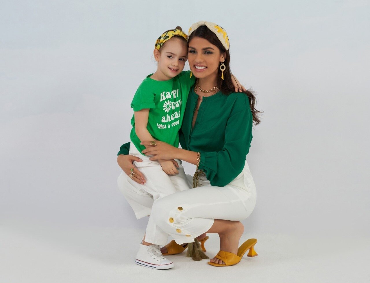 ويمكن للسيدات التألق في اليوم الوطني بفستان طويل من الساتان وبأكمام طويلة باللون الأخضر اللامع وتصميم انسيابي. كما يتوفر هذا التصميم بشكل قمصان من الساتان المزينة بكشاكش. وتضمن التشكيلة أيضاً فساتين بتصميم قميص باللون الأخضر الداكن وكنزات بأكمام منفوخة وياقات بربطة عنق باللون الأخضر الفاتح للاحتفال بهذه المناسبة. ويمكن للبنات المشاركات في الاحتفالات التألق بقمصان تي شيرت بيضاء مزينة بطبعات هندسية معاصرة أو فساتين بيضاء بتطريزات الأزهار باللون الأخضر.