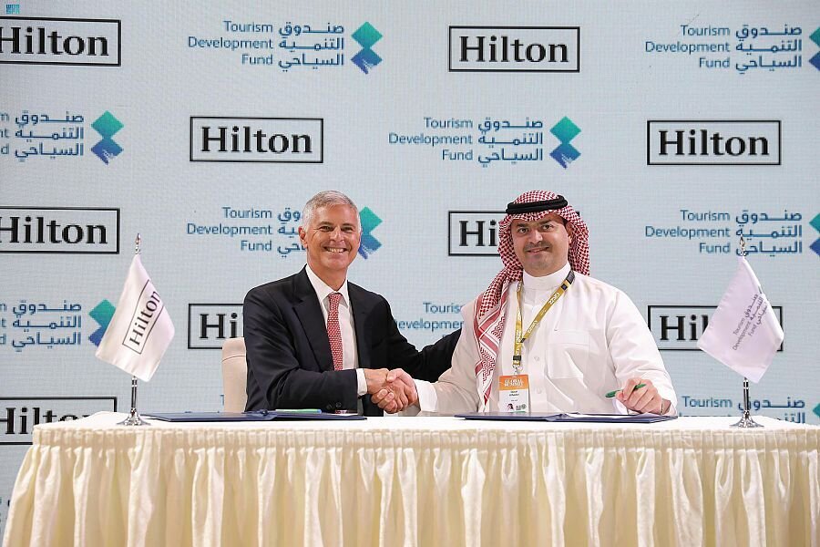 وجرى توقيع الاتفاقية خلال القمة العالمية للمجلس العالمي للسياحة والسفر بواسطة كلّ من الرئيس التنفيذي لصندوق التنمية السياحي قصي الفاخري، والرئيس والمدير التنفيذي لهيلتون كريس ناسيتا.