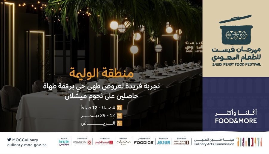 أطلقت هيئة فنون الطهي النسخة الثانية من مهرجان "فيست للطعام السعودي" بحلته الجديدة على مساحةٍ تقدر بـ 60 ألف متر مربع في حي حطين بالرياض، والذي يستمر لمدة أسبوعين محتوياً على مسميات وخصائص الطبخ السعودي بمختلف مناطق المملكة، لتنمية واستكشاف المحتوي المحلي، ونقل الخبرات والمعرفة في الطعام السعودي.