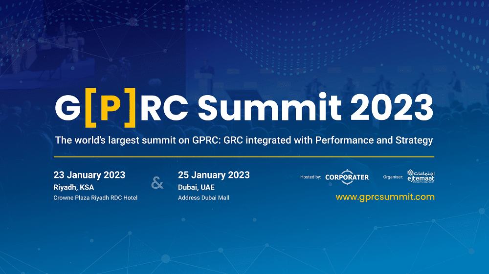 أعلنت شركة اجتماعات للفعاليات قيامها بتنظيم قمة الحوكمة والأداء والمخاطر والامتثال GPRC 2023، التي تستضيفها شركة كوربوراتر (Corporater) العالمية للبرمجيات التي تُمكن المؤسسات في جميع أنحاء العالم من إدارة أعمالها باستخدام حلول الحوكمة والأداء والمخاطر والامتثال المتكاملة على منصة واحدة، وذلك بمشاركة نخبة من كبار المسؤولين والرؤساء التنفيذيين والمتخصصين وصناع القرار في مجال الحوكمة والمخاطر والامتثال (GRC) من مختلف القطاعات لمناقشة موضوعات رئيسية مثل التكنولوجيا والتوجهات الرئيسية التي تشكل مستقبل إدارة المؤسسات. وستعقد القمة التي سيحضرها المدعوين فقط في العاصمة السعودية الرياض يوم 23 يناير 2023، ودبي بدولة الإمارات العربية المتحدة يوم 25 يناير 2023.