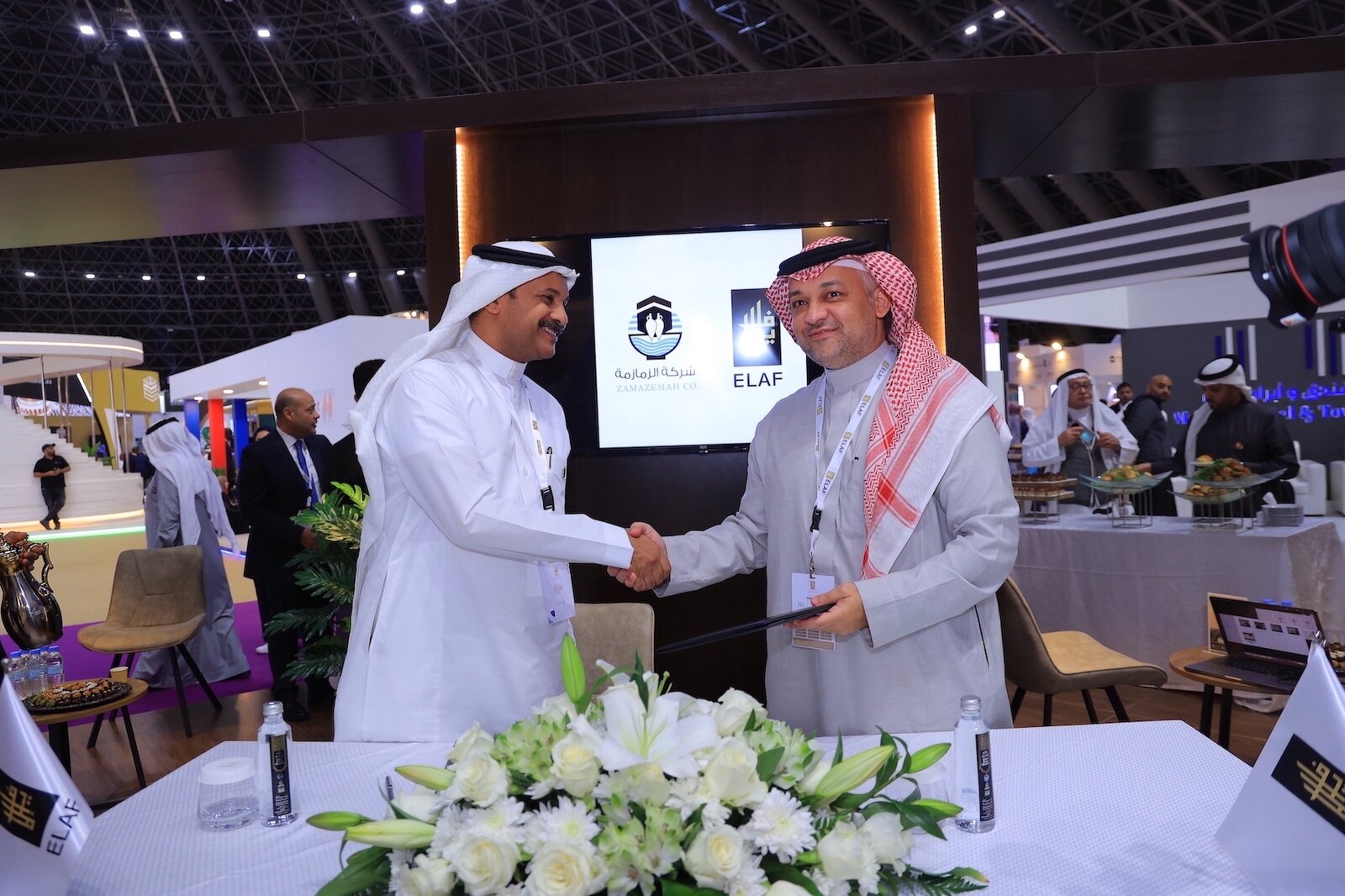 وعلى هامش فعاليات الحدث، أبرمت مجموعة "إيلاف" وشركة "الزمازمة" اتفاقية تعاون، بحضور حسن أبو الفرج، العضو المنتدب للزمازمة؛ وعبد الله قزاز، الرئيس التنفيذي لشركة الزمازمة. وتنص الاتفاقية على تولي شركة "الزمازمة" توفير مياه زمزم لفنادق المجموعة في مكة المكرمة والمدينة المنورة. وأعرب الدكتور عادل عزت، الرئيس التنفيذي لمجموعة إيلاف، عن سعادته بهذا التعاون الذي سينعكس أثره بشكل إيجابي على زوار بيت الله الحرام والمسجد النبوي الشريف خلال إقامتهم في فنادق إيلاف، بما يعزز تجربة النزلاء والخدمات الاستثنائية المقدمة لهم، لافتاً إلى أن خدمة توفير مياه زمزم تأتي في إطار رؤى واستراتيجية المجموعة لضمان راحة نُزلاء فنادقها وتوفير تجربة إقامة متميزة لهم.