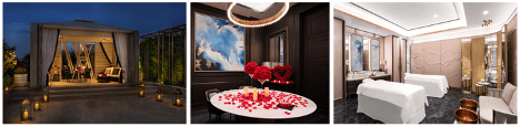 سيستمتع الضيوف أيضًا بوجبة إفطار وغداء لذيذة متوازنة بشكل متناغم حيق تتكون من المأكولات المغذية لتقدم تجربة مختلفة على ضوء الشموع. سيتمكن الضيوف من الاختيار من بين ثلاث علاجات سبا لكل منها، ليتم تقديمها إما في الفيلا أو في غرفة علاج كبار الشخصيات.