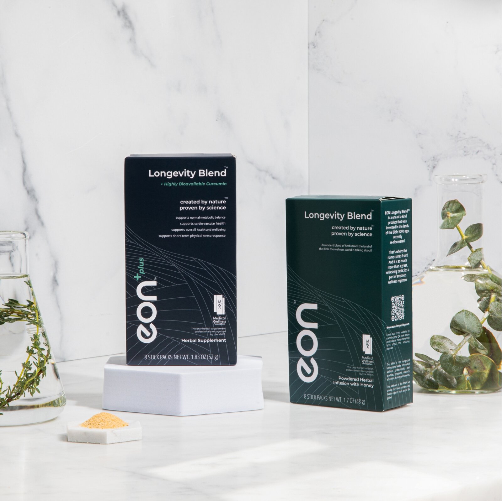 وبالإضافة إلى منتج إيون لونجيفيتي بلس المثبت سريرياً (والذي يحتوي على الكركم عالي الامتصاص)، يستطيع الزبائن أيضاً الحصول على إيون لونجيفيتي، المحضر من خلطة خاصة من الأعشاب الطبيعية بالكامل (دون إضافة الكركم). ولضمان أفضل النتائج، ينصح المستهلك باستخدام إحدى الخلطتين مرة واحدة يومياً على أقل تقدير مع الماء الدافئ أو البارد على معدة فارغة. كما يُمكن إضافة الخلطة إلى المشروبات الأخرى مثل القهوة أو الشاي.
