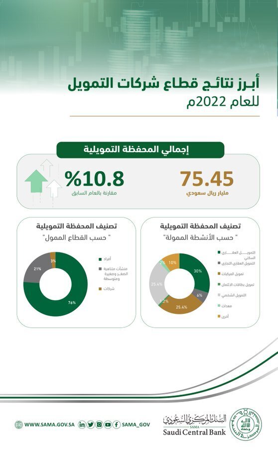 أكدت بيانات أعلنها البنك المركزي السعودي "ساما"، تحقيق معظم مؤشرات قطاع شركات التمويل نسب نمو بمعدلات متفاوتة في المملكة خلال عام 2022م.