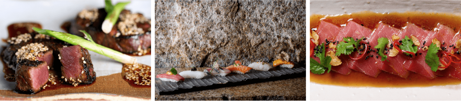تضمّ قائمة الطعام التشكيلة الكاملة من أطباق مطعم زوما الحائزة على جوائز بما في ذلك شريحة تندرلوين لحم البقر الحارّ بالسمسم؛ وسمك القد الأسود المتبّل بصلصة الميسو؛ وسمك القاروس المشوي مع الفلفل الحار والزنجبيل؛ والحبّار المقلي والمقرمش مع الفلفل الحار الأخضر واللايم؛ وتمبورا الروبيان مع واسابي البازلاء الخضراء وتغميسة الفلفل الحار؛ وتُقدّم جميعها مع كوكتيلات متميّزة وقائمة من مشروبات العنب والساكي العالمية.