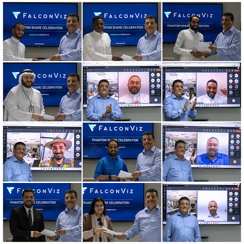 أعلنت شركة "فالكونفيز"FalconViz ، الشركة الرائدة في مجال نمذجة الأصول وخدمات التحول الرقمي في المملكة العربية السعودية، عن مبادرة مميزة تَعكِس التزامها بتقدير وتكريم الفريق الذي يقف وراء نجاحها المستمر. وقد تم الإعلان عنها خلال احتفالية أُقيمت في مقر الشركة بمركز الأبحاث والإبتكارات بجامعة الملك عبد الله للعلوم والتقنية في مدينة جدة، وبحضور الشريك المؤسس وعضو مجلس الإدارة، الدكتور محمد شلبي. وتتضمن هذه المبادرة توزيع حصص مِلكية مُتمثلة في أسهم الشركة بين فريق العمل تكريمًا لأدائهم المُميز خلال السنوات الماضية، وتماشيًا مع سياسات الشركة التي تُولي اهتماماً خاصاً بمشاركة فريق العمل في مِلكيتها، وتشجيعهم على تقديم أفضل أداء ممكن.