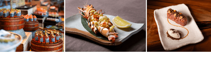 ستستمتعون بأطعمة ذات لمسة متطورة على أسلوب إيزاكايا التقليدي، إذ يتضمن البرانش مجموعة مختارة من المقبلات بما في ذلك تمبورا الجمبري المميز، يوزو تشيلي مايو، الحبار المقلي المقرمش، بالإضافة إلى مجموعة متنوعة من الساشيمي والنيجيري وماكي. بالإضافة إلى لحم البقر ياكينيكو مع tahoon Mayo من محطة طهي robata الحية، تليها الأطباق الرئيسية المميزة بما في ذلك سمك القد الأسود المتبل بالميزو ، الجمبري النمر الجامبو، و wagyu ribeye الأسترالي المشوي مع المايونيز الكمأة. ستحظون بمجموعة متنوعة من الحلويات كالآيس كريم، الشوكولاته، والفواكه الاستوائية إلى جانب قائمة من المشروبات الغازية.