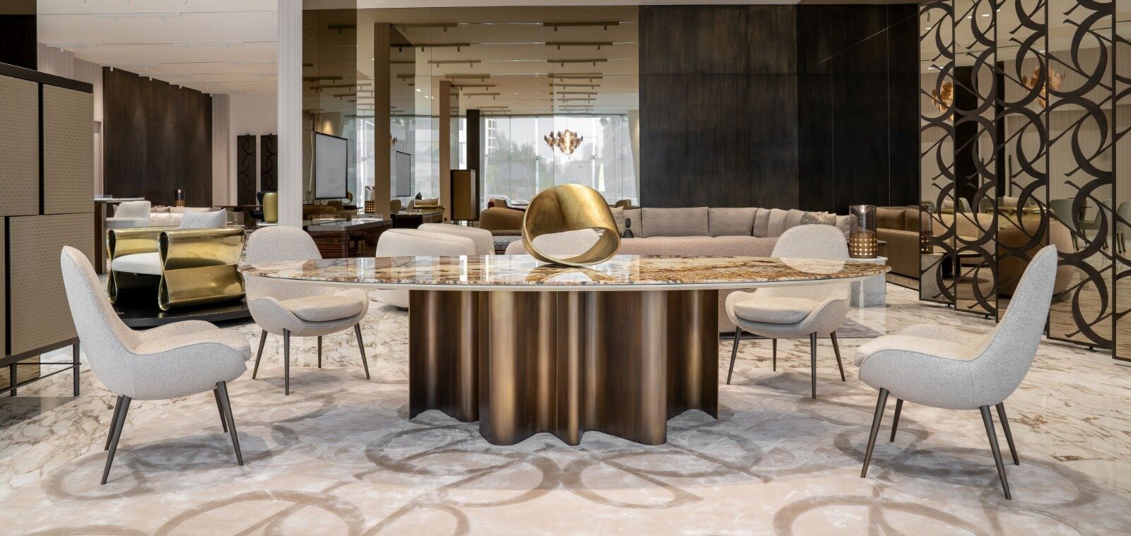 وتعكس مجموعة الأرائك والأسرّة والإكسسوارات الفاخرة من ELIE SAAB Maison رؤيةً فريدة للفخامة. كما تجسّد التشطيبات اللامعة للمعادن والبرونز والرخام – بمجموعتها الحيوية من تدرجات ألوان الكريمي والباستيل والأحمر – القيم الجمالية الخاصة للعلامة التجارية في التألق الدائم والمهارة الحرفية العالية. علاوةً على ذلك، تعتبر المجموعة تجسيداً حقيقياً للتصميم الراقي الحديث بجمعها بين الأناقة الكلاسيكية والأحاسيس العصرية.