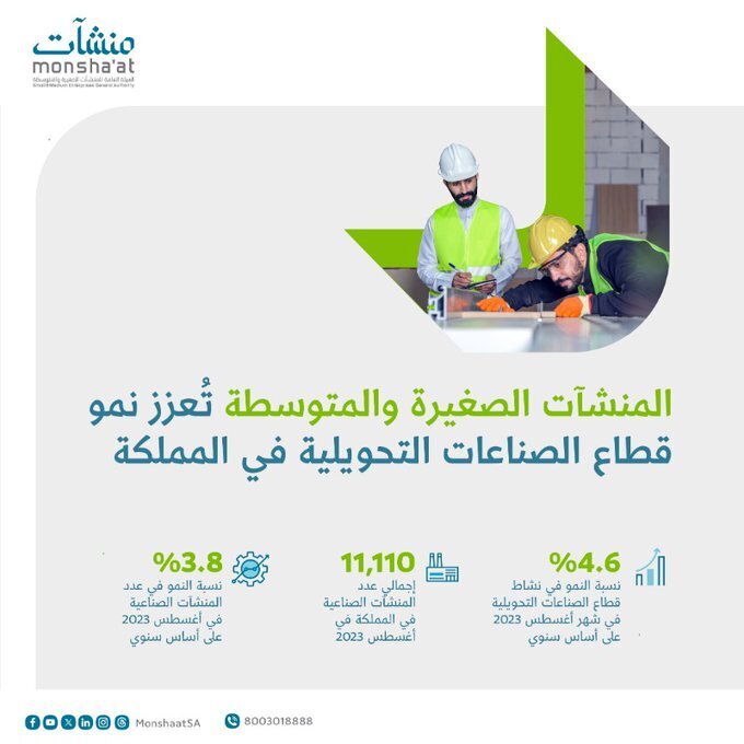 أصدرت الهيئة العامة للمنشآت الصغيرة والمتوسطة "منشآت" تقرير "مرصد منشآت" للربع الثالث من عام 2023، الذي كشف زيادة في عدد المنشآت الصغيرة والمتوسطة بالمملكة حيث بلغت 3.5% عن الربع الثاني من هذا العام، لتصل إلى 1.27 مليون منشأة، تركّز أغلبها في العاصمة الرياض بنسبة 43.3%، تلتها منطقة مكة المكرمة بنسبة 18.3%.