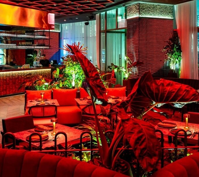 يُمكن للضيوف الاستمتاع بالغداء في القاعة الداخلية وسط الديكور الجميل، أو على الترّاس البانورامي الذي يوفّر أروع الإطلالات على نافورة دبي مول.