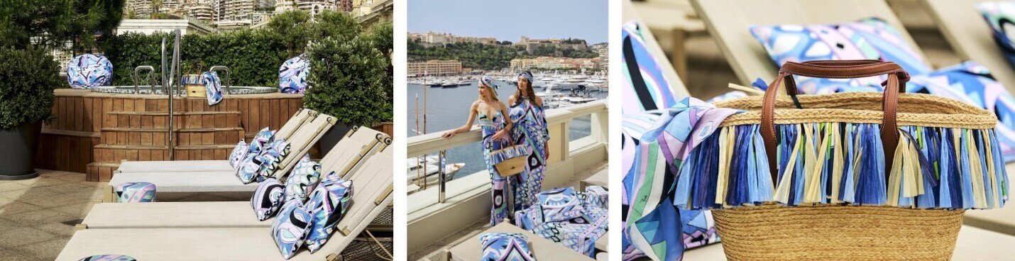 في هذا الصيف، تضفي Maison Pucciنقشاتها وألوانها الزاهية على منتجع Thermes Marins Monte-Carlo الصحي في Hotel de Paris Monte-Carlo and Hotel Hermitage Monte-Carlo.