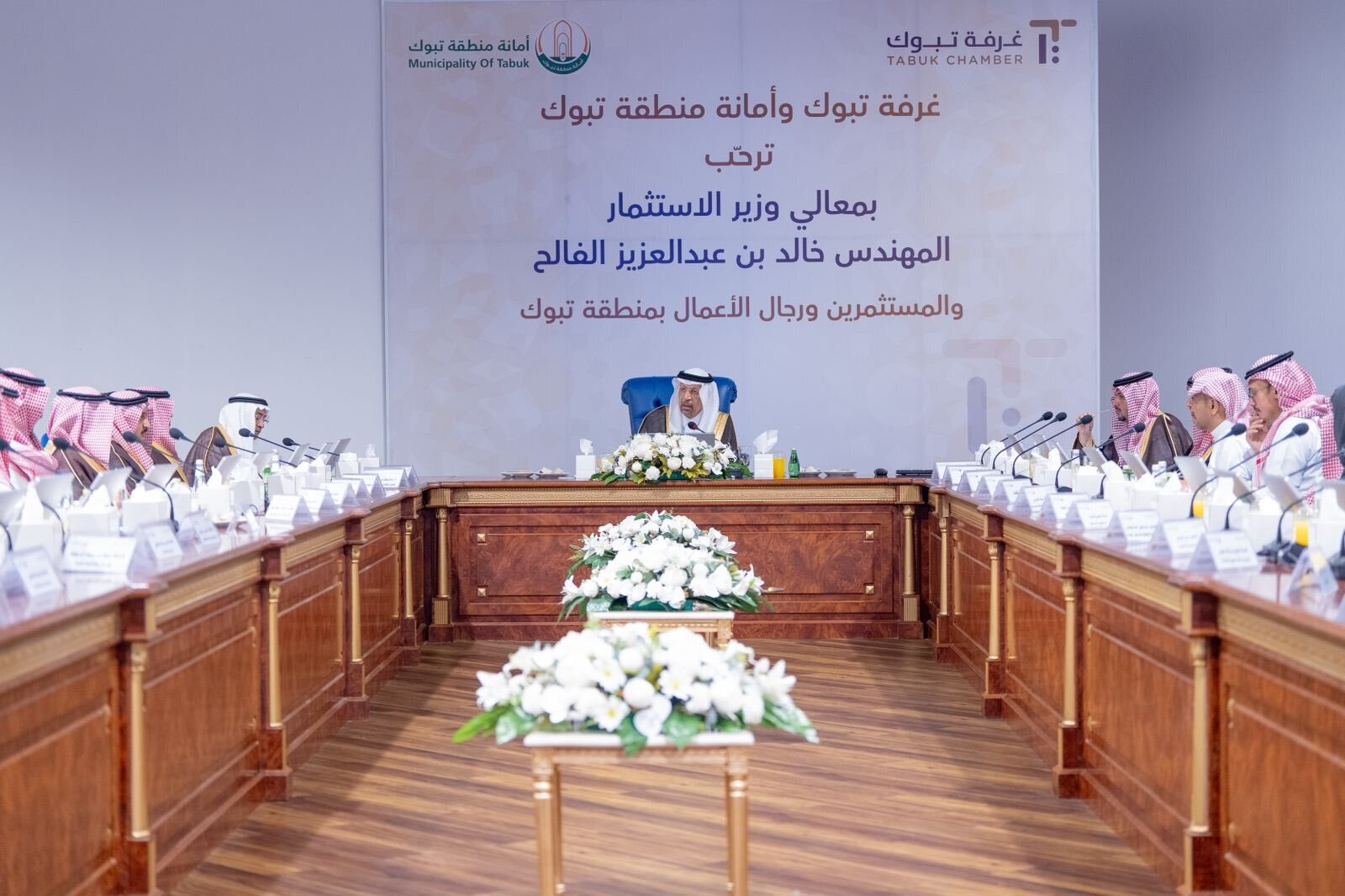 جاء ذلك خلال لقاء نظمته غرفة تبوك وأمانة منطقة تبوك ، لمعالي وزير الاستثمار المهندس خالد بن عبدالعزيز الفالح بالمستثمرين ورجال الأعمال بالمنطقة, بحضور رئيس الغرفة عماد بن سداد الفاخري، وأمين منطقة تبوك المهندس حسام بن موفق اليوسف.