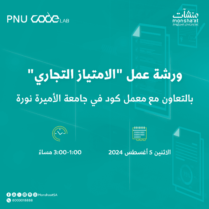 بالتعاون مع "معمل كود" في جامعة الاميرة نورة بنت عبد الرحمن تقام ورشة عمل عن الامتياز التجاري.