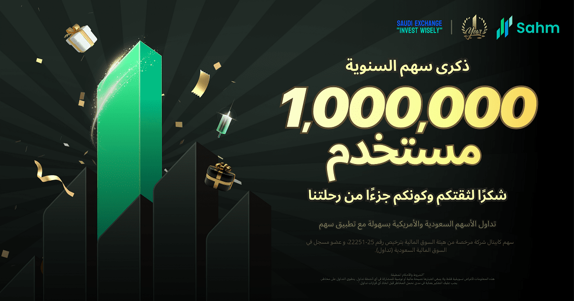 احتفالًا بهذا الإنجاز الرائع في الوصول إلى أكثر من مليون مستخدم، تُطلق سهم كابيتال حملة "مليون ريال سعودي نقدًا من منصة سهم". التي تقدم جوائز نقدية بقيمة مليون ريال سعودي، بالإضافة إلى أسهم مجانية، قسائم استرداد نقدية، والمزيد لعملاء سهم المميزين.