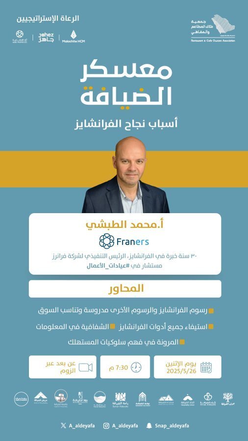 تتواصل فعاليات "معسكر الضيافة- الامتياز التجاري" الذي تقيمه جمعية ملاك المطاعم والمقاهي وهو برنامج تدريبي مكثف عبر الإنترنت يهدف إلى تمكين رواد الأعمال الطموحين وتحويل مشاريعهم إلى علامات تجارية ناجحة يمتد انتشارها في كل مكان.