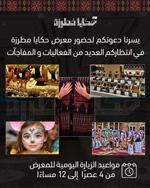 ويقدم المعرض للزوار رحلة مفعمة بالتاريخ والحنين، حيث تسرد تفاصيله حكايات غزلتها أنامل المبدعين عبر كل غرزة ونقشة. يشمل برنامج الفعالية جلسات ثقافية تفاعلية وعروضًا فلكلورية تعبّر عن تنوع الإرث الشعبي، إلى جانب بازار غني بالقطع اليدوية الفريدة والمقتنيات التي تعكس روح الأصالة والتميز.ويعد المعرض فرصة مثالية لاكتشاف حكايا تحكى بالخيوط والإبر، حيث تنبض كل غرزة بروح أصيلة وقصة تروى.