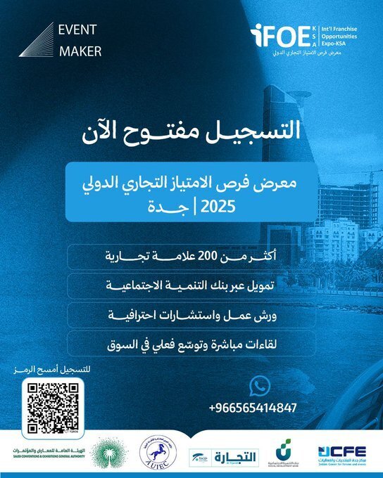 في خطوة تعكس النمو المتسارع لسوق الامتياز التجاري في المملكة، تستعد مدينة جدة لاستقبال النسخة الثالثة من معرض فرص الامتياز التجاري الدولي (IFOE)، وذلك خلال الفترة من 2 إلى 4 سبتمبر 2025 في مركز جدة للمعارض والمؤتمرات.