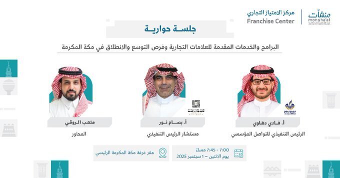 وشهد اليوم الأول انعقاد جلسة حوارية شارك فيها مستشار الرئيس التنفيذي للهيئة الملكية لمدينة مكة المكرمة والمشاعر المقدسة بسام نور، لاستعراض أبرز المشاريع التطويرية التي تنفذها الهيئة في مكة، مشيرًا إلى دور الامتياز التجاري في توسيع مساحات التجزئة داخل هذه المشاريع، وتسهيل دخول العلامات الوطنية والعالمية إلى السوق، فضلًا عن إسهامه في رفع جاذبية الاستثمار وتحقيق مستهدفات رؤية المملكة 2030.