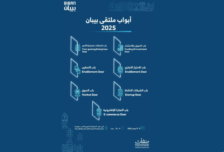 كشفت الهيئة العامة للمنشآت الصغيرة والمتوسطة "منشآت" عن الأبواب السبعة التي سيحتضنها ملتقى "بيبان 2025"، المقرر انعقاده خلال الفترة من 5 إلى 8 نوفمبر المقبل في مركز واجهة الرياض للمعارض والمؤتمرات، تحت شعار "وجهة عالمية للفرص"، التي صممت لتلبية احتياجات رواد ورائدات الأعمال وأصحاب المنشآت الصغيرة والمتوسطة، وتمكينهم من التوسع وتحقيق الاستدامة.