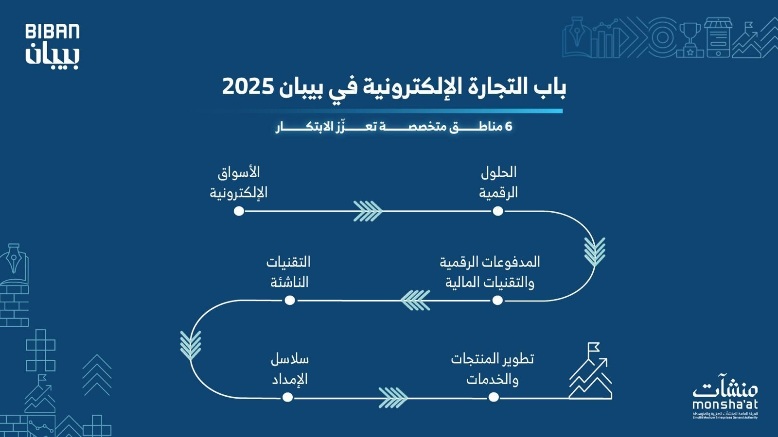 ويستهدف باب التجارة الإلكترونية في "بيبان 2025" استقطاب الشركات العالمية والمحلية؛ لاستعراض أبرز الحلول والتجارب التي تسهم في تعزيز الابتكار، وتطوير منظومة التجارة الإلكترونية، حيث يتكون الباب من (6) مناطق متخصصة، صُممت لتمنح الزوار تجربة معرفية ومهنية متكاملة تعكس أحدث الاتجاهات العالمية في مجال التجارة الإلكترونية.