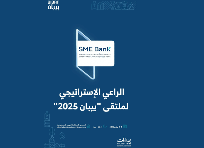 يُشارك بنك المنشآت الصغيرة والمتوسطة بصفته راعيًا إستراتيجيًا في ملتقى بيبان 2025، الذي تنظمه الهيئة العامة للمنشآت الصغيرة والمتوسطة "منشآت" خلال الفترة من 5 إلى 8 نوفمبر 2025 في مركز واجهة الرياض للمعارض والمؤتمرات، تحت شعار "وجهة عالمية للفرص".
