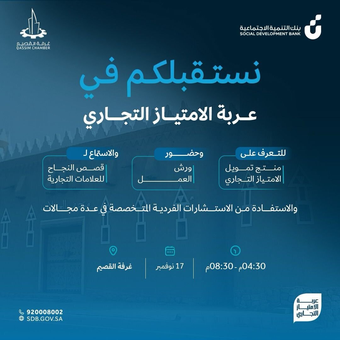 غرفة القصيم وبنك التنمية الاجتماعية يدعوان رواد الأعمال إلى فعالية “عربة الامتياز التجاري”