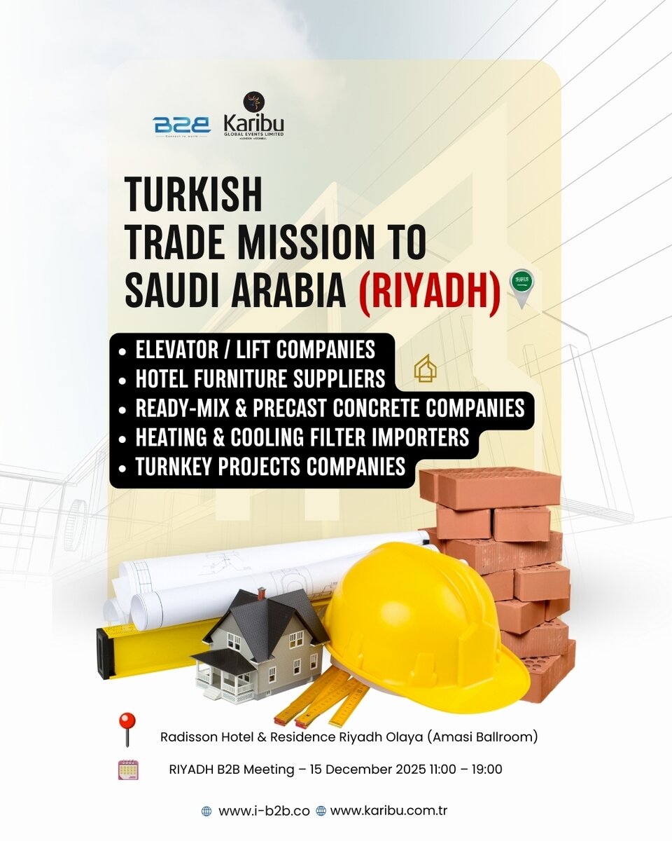 في إطار تعزيز العلاقات الاقتصادية بين المملكة العربية السعودية وجمهورية تركيا، تستضيف العاصمة الرياض بعثة تجارية تركية متميزة، بتنظيم مشترك بين شركتي B2B وKaribu Global Events Limited، وذلك يوم الاثنين 15 ديسمبر 2025 في فندق راديسون الرياض – قاعة أماسي، من الساعة 11 صباحًا حتى 7 مساءً.